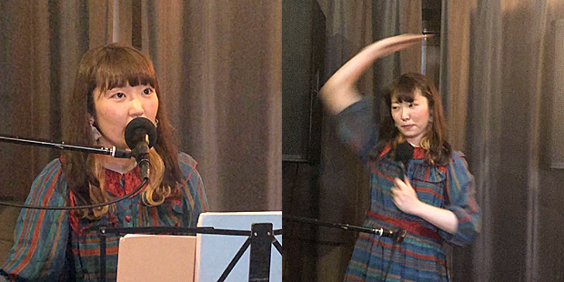 最初に登場したオノマトペルは、ピアノとボーカルのデュオ。宮沢賢治さんに影響されたという寓話の世界を歌う。根っ子はジャズだそうだけど、この日はサポートにクラリネットとチェロが入って、クラシックの室内楽みたいだった。でもちゃんとポップスとして成立してる稀有なユニットだった。